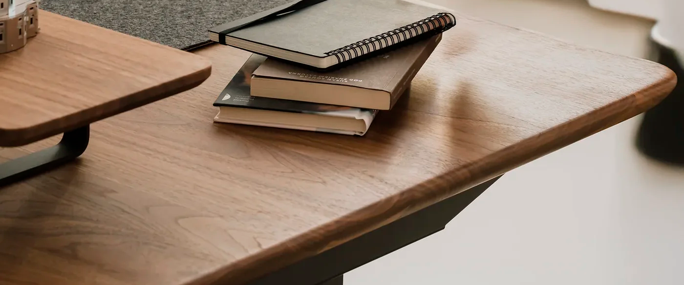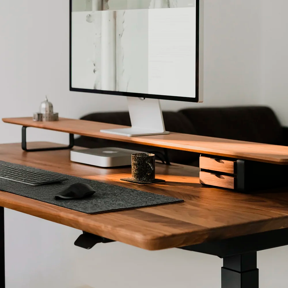 Solid wood desktops built for heavy multi-monitor setups. Zero sag. Zero MDF.